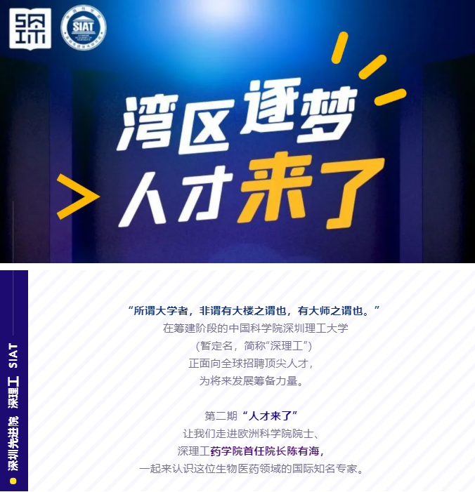 近日,中国科学院深圳理工大学(暂定名,简称“深理工”)药学院讲席教授、院长陈有海接受深圳市生命科学与生物技术协会会长何询的专题访谈,围绕“如何加快生物医药产业发展”这一主题进行阐述。