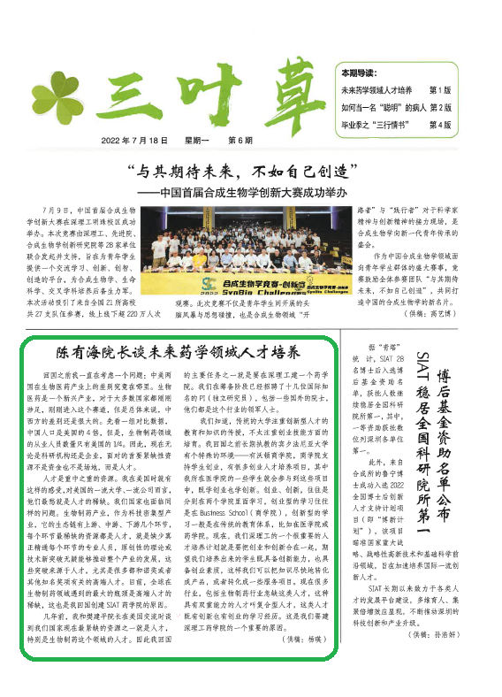 • 《三叶草》(第6期)陈有海院长谈未来药学领域人才培养